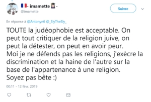 Une formule déjà reprise par Zineb el Rhazoui pour l’appliquer de même aux Musulmans. (Zineb devait aussi participer à la grande messe souverainiste, islamophobe et pro-Poutine de Georges Kuzmanovic mais elle était en déplacement à l’étranger, occupée à rencontrer l’Imam préféré de l’extrême droite internationale, l’Imam Tawhidi.)