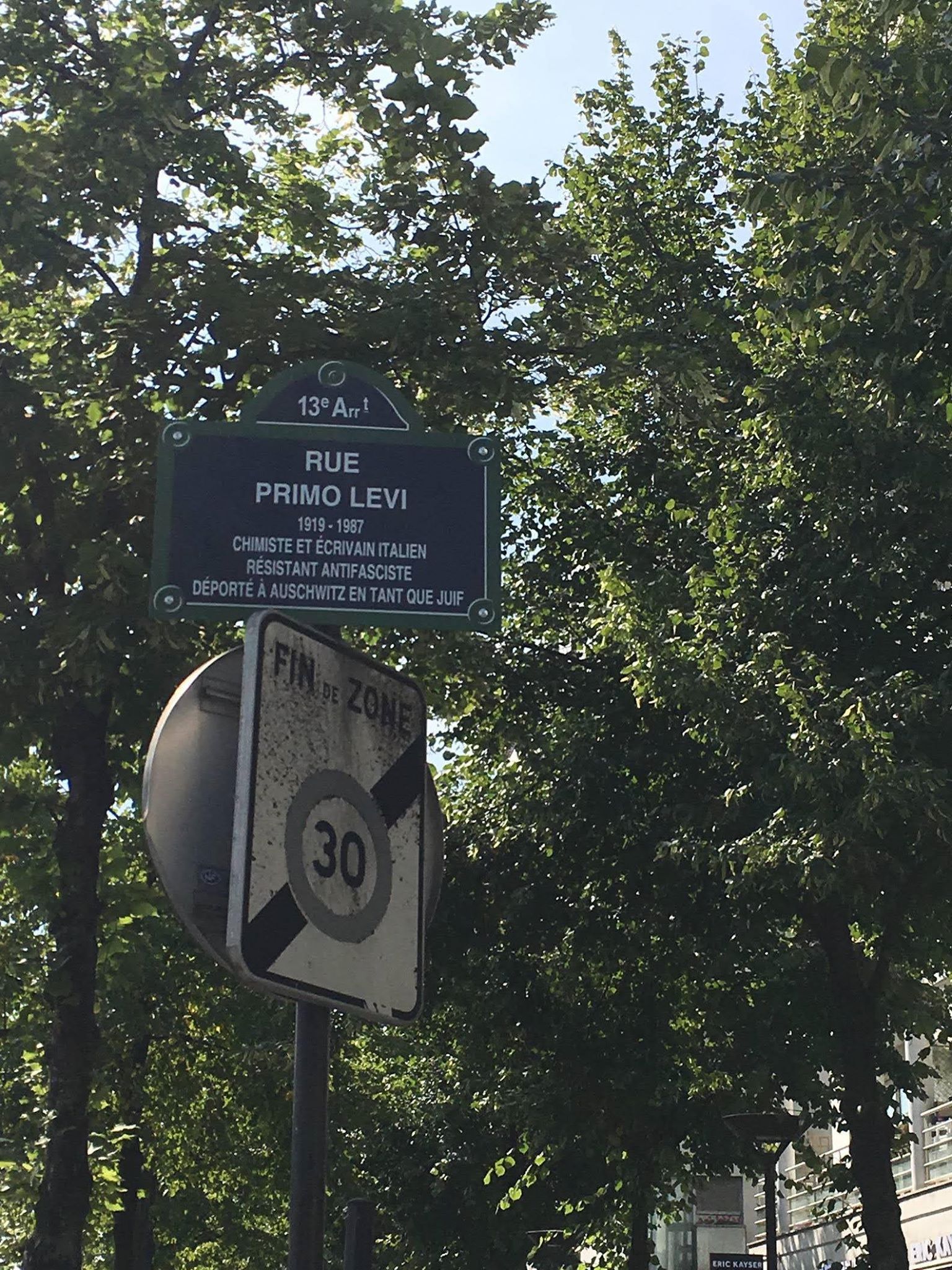 Durant cet été 2019, dans le 13e arrondissement de Paris, la rue Primo Levi a fait peau neuve. Une nouvelle plaque de rue a été posée, dont la légende corrige heureusement celle que l’on pouvait lire depuis 2003, lorsque la rue avait été inaugurée. En particulier, la mention « Déporté à Auschwitz en tant que Juif », qui remplace désormais « Résistant déporté à Monowitz », est un événement. Car, si la légende « Déportés à Auschwitz parce que nés Juifs » au pluriel honore depuis quelques années la mémoire des familles juives et de leurs enfants scolarisé·e·s qui ont été déporté·e·s, elle n’a guère été adoptée au singulier pour commémorer les personnes célèbres. Nous publions ici la lettre adressée en février 2019 à la mairie de Paris par un collectif d’enseignant·e·s, chercheur·euse·s, défenseur·euse·s des droits humains et militant·e·s contre les racismes et l’antisémitisme. C’est en effet l’argumentaire de cette lettre, bien reçu par ses destinataires, qui a entraîné la décision de modifier le paysage urbain de la rue Primo Levi, en y inscrivant un texte plus conforme à la réalité historique. Ainsi, la mémoire de l’auteur, réputé pour son souci d’exactitude, pour son combat aussi contre la négation de l’histoire, n’en est que mieux honorée. À l’intention de Madame la maire de Paris, Anne Hidalgo Monsieur le maire du 13e arrondissement de Paris, Jérôme Coumet Madame l’adjointe chargée de toutes les questions relatives à la mémoire, Catherine Vieu-Charier Objet : modification de la légende de la plaque de rue Primo Levi…